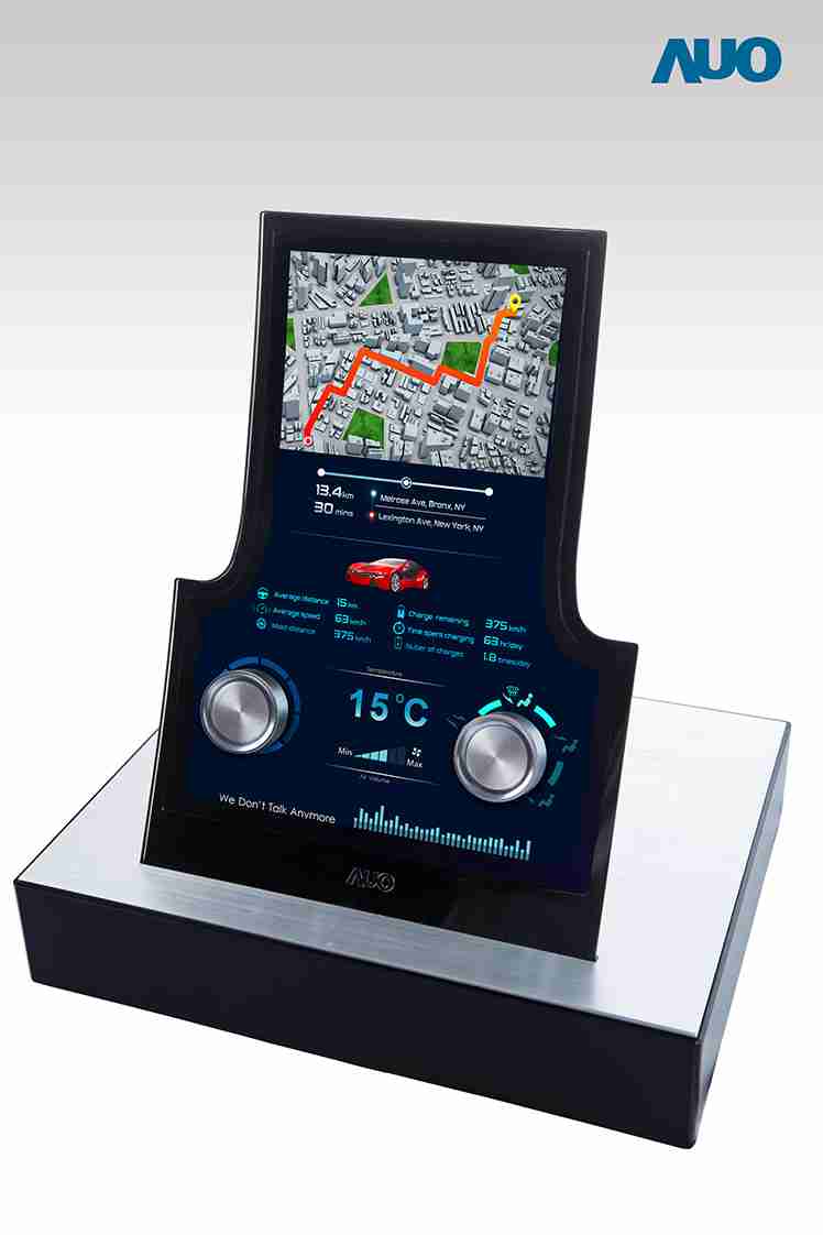 12.3 寸 Full HD LTPS 显示屏同样具备 1000 nits 高亮度,,,搭载内嵌式触控技术,,,整合驱动与触控 IC 于显示屏制程,,,,使显示屏厚度降低,,,,为中控台创造更多机构设计空间。。应用于抬头显示器的 3寸 LTPS 显示屏具有高穿透率、、、、1200:1 高对比度度,,,,以及 297 PPI 高画素密度。。液晶最高可耐受到 110C 的高温 (TNI) 而不液化,,,,在阳光高温下维持优异稳定的显示效果。。