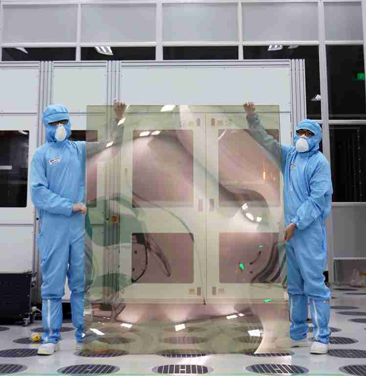 龙门国际昆山厂第六代 LTPS (低温多晶硅) 生产的玻璃基板尺寸为 1500x1850 mm (毫米)