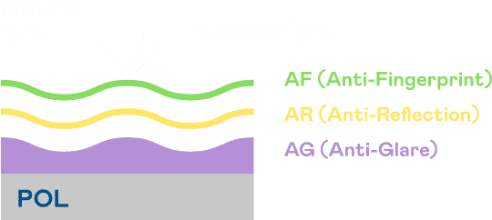 A.R.T.龙门国际光电发展出独家的表面处理跟多层镀膜技术,,,,让外部光线照射到显示器表面时所产生的反射光大幅降低。。。 |